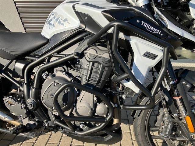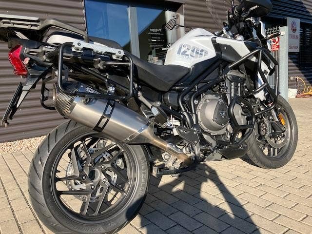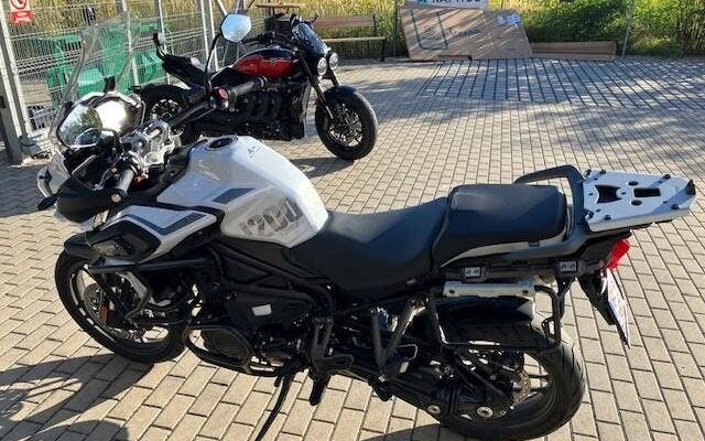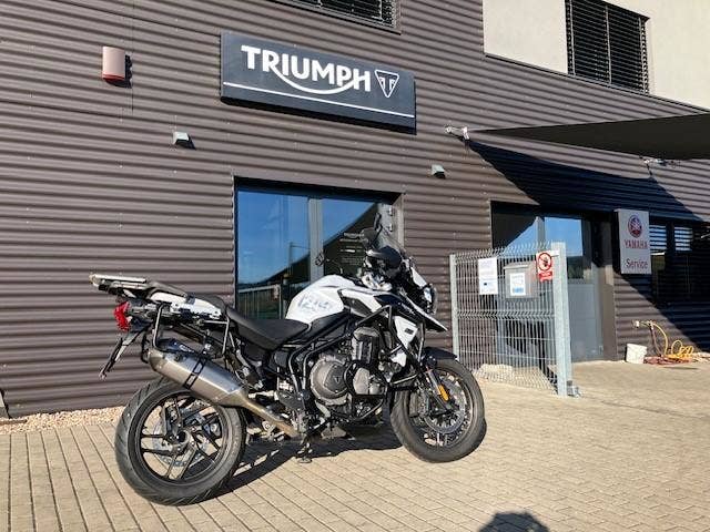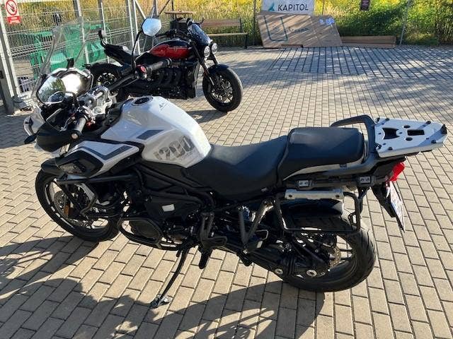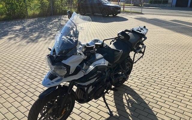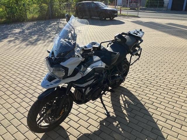 | Další výbava | nové pneu Metzeler Tourance Next 2, vyhřívané gripy, quickshifter, výfuk Arrow, elektronické pérování, vyhřívané sedlo řidiče, boční kufry + topcase Triumph, kryt předního světla Triumph, spodní padací rám Triumph + horní padací rám (+brašny) Heed, zadní blatník Puig, zvýšení řidítek o 2cm, rozšířený boční stojan, folie na display. |