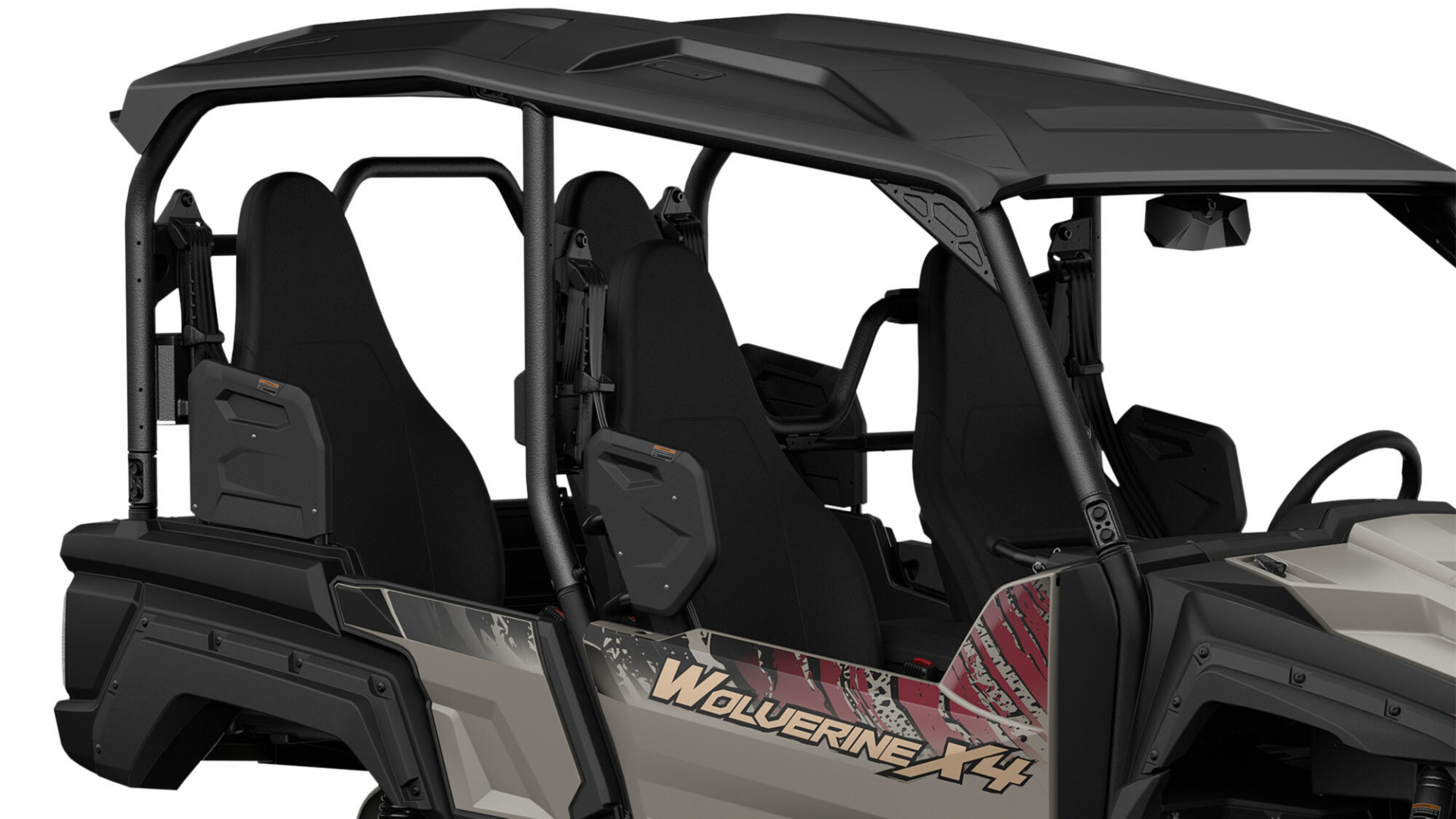 Model Wolverine X4 850 SE je vybaven sedadly plné velikosti, která jsou navržena pro pohodlnou přepravu čtyř pasažérů. Luxusní sedadla s vysokým opěradlem zajistí vám i spolujezdcům příjemnou a pohodlnou jízdu i v tom nejextrémnějším terénu.