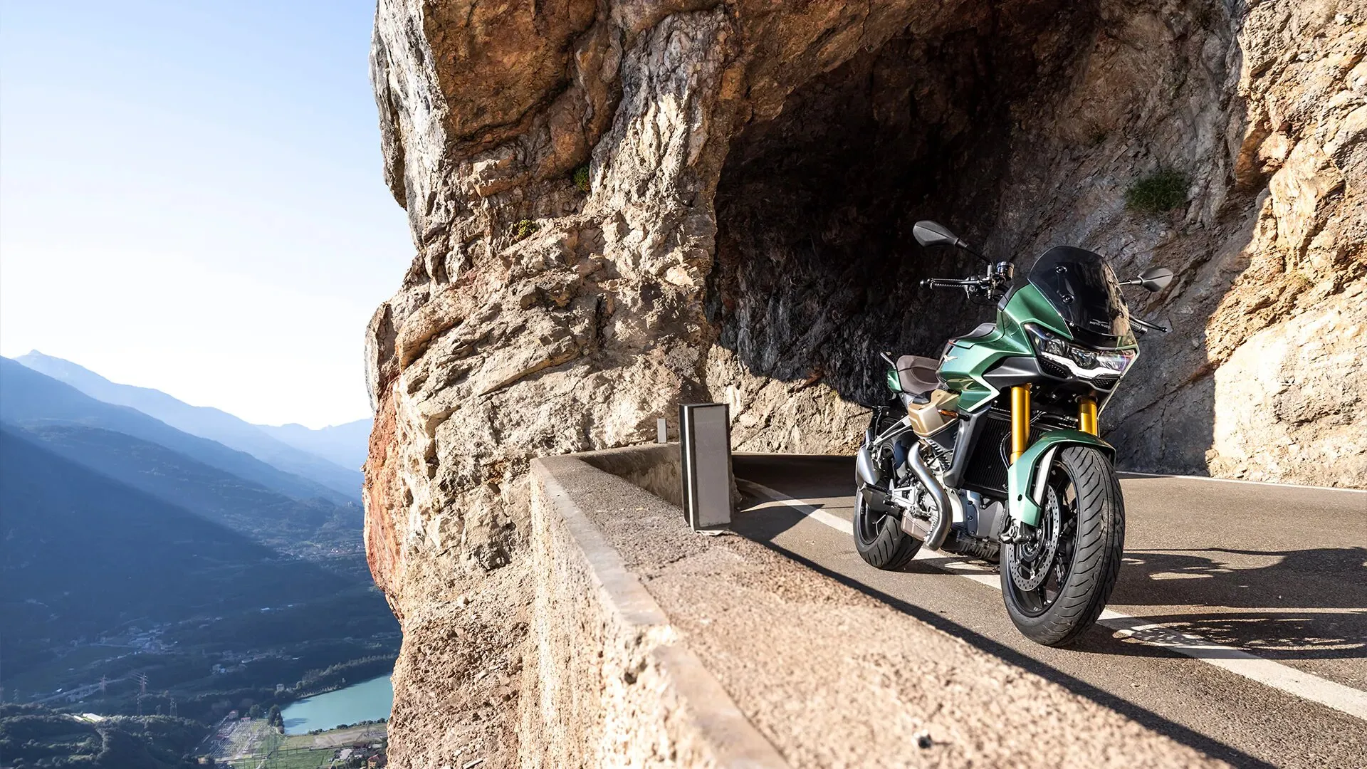 | Výbava | Full LED světlomety s DRL, náklonové svícení, LED směrovky, ABS a Moto Guzzi Traction Control, tempomat, jízdní režimy, plnobarevná TFT přístrojová deska, adaptivní aerodynamika, elektricky nastavitelné plexisklo, TPMS (systém monitorování tlaku v pneumatikách), vyhřívané rukojeti, rychlořazení nahoru/dolů, Moto Guzzi MIA |