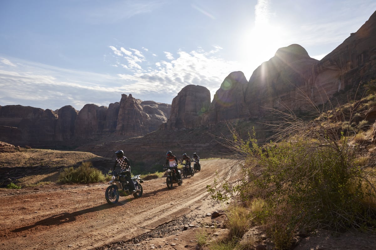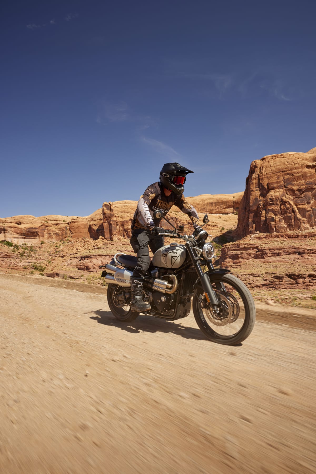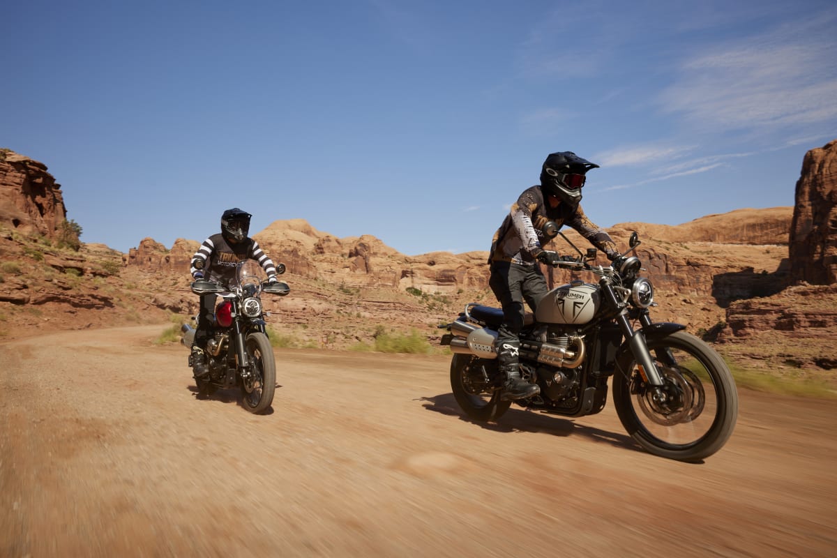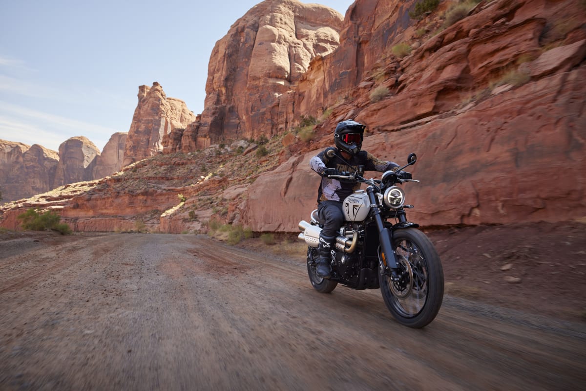 Dvouválcový motor Bonneville o objemu 1200 cm3 s vysokým točivým momentem a specifickým laděním pro Scrambler přináší vzrušující odezvu a plynulý, ovladatelný průběh výkonu pro bezproblémovou jízdu na silnici i v terénu.