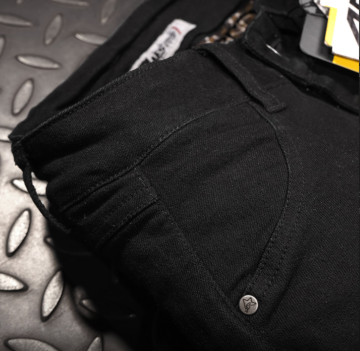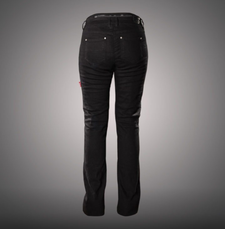 Kalhoty jsou vyrobeny z 14 uncového, elastického denimu v černé barvě a zesílené tkaninou Kevlar® by Dupont na kolenou, bocích a v sedací části. Vybaveny jsou anatomicky tvarovanými koleny a paměťovými protektory Viscofoam na kyčlích. Navíc kalhoty mají zašité přední kapsy, zadní kapsy a zvýšený pas s zipem na sepnutí s bundou.