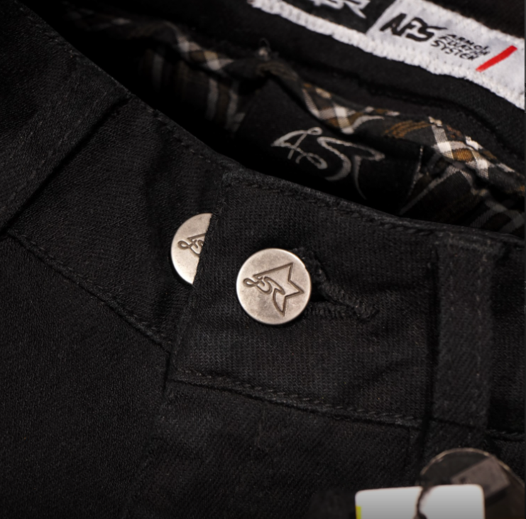 4SR Dámské Kalhoty GTS Černé jsou jediné motocyklové džíny na trhu, které mají fixaci chráničů na správném místě. Tento patentovaný systém, AFS – Armor Fixation System, drží chránič na místě nezávisle na vrchním materiálu džínů, což zajišťuje nejvyšší míru ochrany.