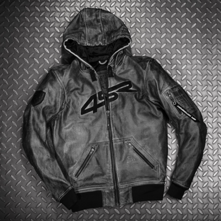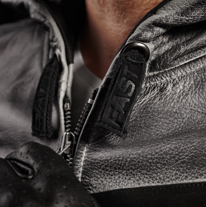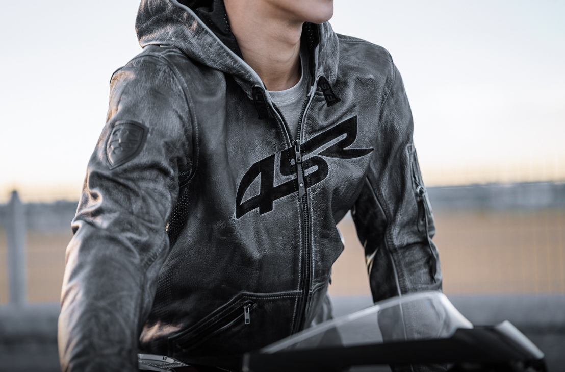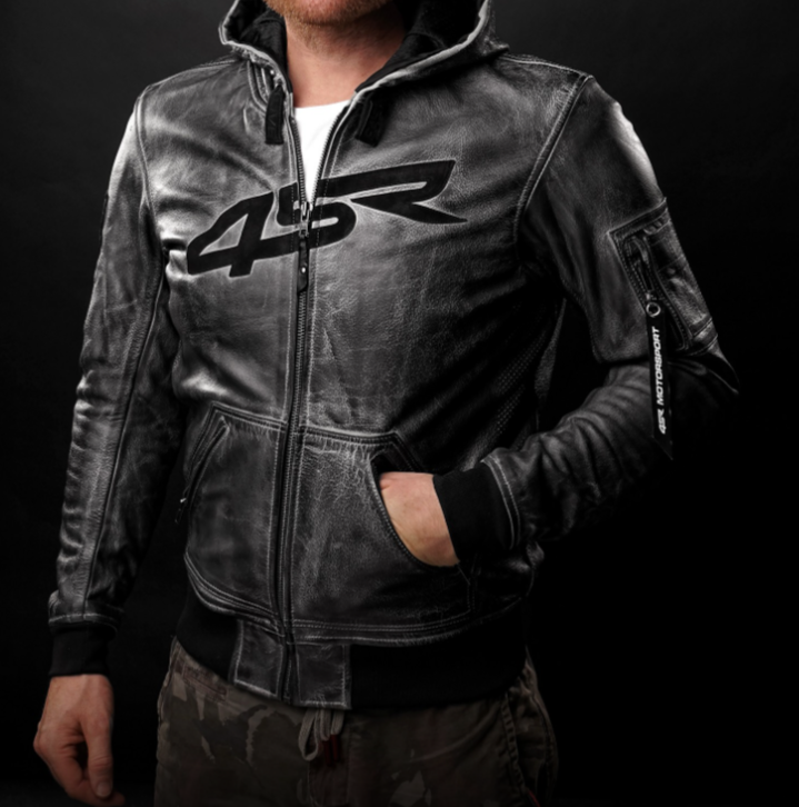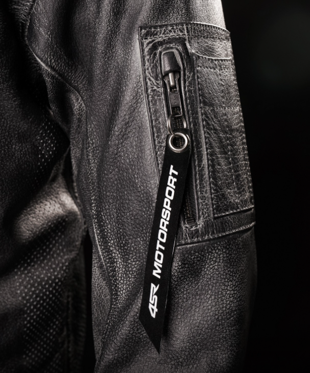 Bunda má YKK zipy v úpravě GunMetal a je vybavena lokální perforací pro lepší ventilaci v podpaží a na zádech během horkých letních dnů. Navíc má stylové detaily jako kapsičku na rukávu, kožené táhlo 4SR MOTORSPORT a nápisy LIVE FAST na tkaničkách kapuce.