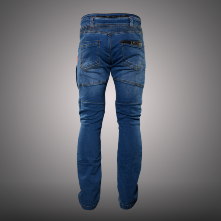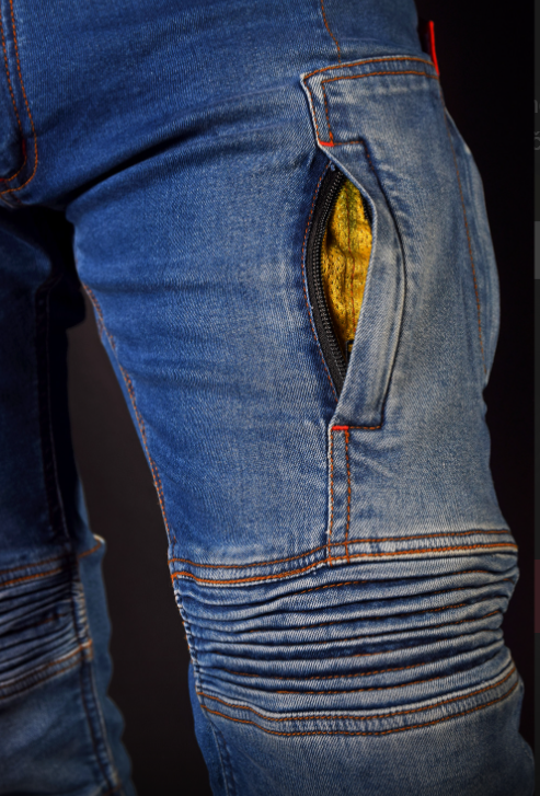 4SR Club Sport Modré kalhoty představují výsledek našich zkušeností z World Superbikes, které jsme využili při jejich vývoji. Tato sportovní jeans kombinéza nabízí funkční flexibilní panely nad koleny a na bedrech pro lepší pohodlí a větší pohyblivost při jízdě na motocyklu. Kvalitní materiál Kevlar® od Dupont zaručuje odolnost a dlouhou životnost. Navíc, chytré umístění odvětrání na horní straně stehen eliminuje riziko zranění zipem při pádu.