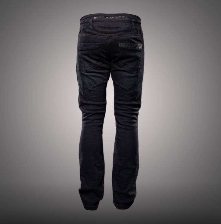 4SR Club Sport Sky Black kalhoty jsou sportovní džíny vyrobené s využitím zkušeností z World Superbikes. Navrženy pro pohodlí a pohyblivost, jsou vyrobeny z elastického materiálu Kevlar® by Dupont a jsou vybaveny flexibilními panely nad koleny a na bedrech. Bezpečnost je zajištěna pomocí odvětrání umístěného na horní straně stehen, které eliminuje riziko zranění od zipu. Kalhoty mají také kvalitní chrániče na kolenou a holeních, které splňují nejvyšší certifikaci Level 2 T+ a mají ergonomický tvar pro maximální ochranu. 4SR Club Sport Sky Black džíny jsou jediné na trhu s patentovaným systémem fixace chráničů, který zajišťuje správné umístění chráničů bez ohledu na pohyb. Tyto kalhoty jsou vyrobeny z 14 uncového, elastického džínového materiálu a jsou certifikovány podle normy EN 17092-4:2020, splňují požadavky osobních ochranných prostředků (OOP) třídy A.