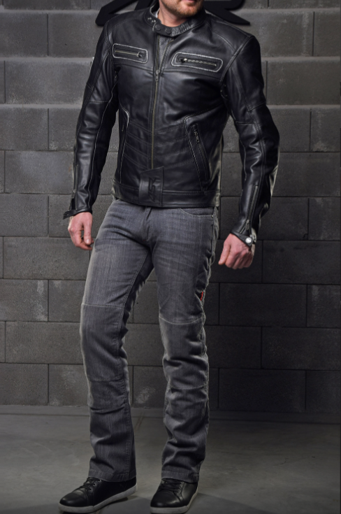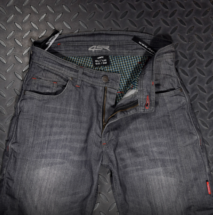 Představujeme 4SR Moto Jeansy Cool Grey, ideální pro horké letní dny na silnici. Tento model je vyroben z pružného 14 uncového šedého denimu pro pohodlí a flexibilitu. Kombinace odolného denimu a DuPont™ Kevlar® vláken v oblasti kolen a sedací části poskytuje vynikající odolnost proti opotřebení.