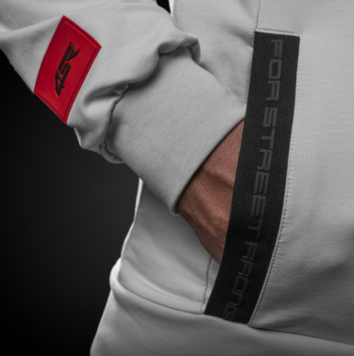 Detaily, jako jsou pohodlné raglánové rukávy, pružný úplet na dolním lemu mikiny a rukávů, a vsazené kapsy s elastickými lemy a 3D nápisem FOR STREET RACING, dodávají mikině jedinečný vzhled. Mikinu zdobí také logo 4SR na hrudi a na pravém rukávu. Mikina je k dispozici v barvách světle šedá a černá, což ji činí ideální volbou pro každodenní nošení.