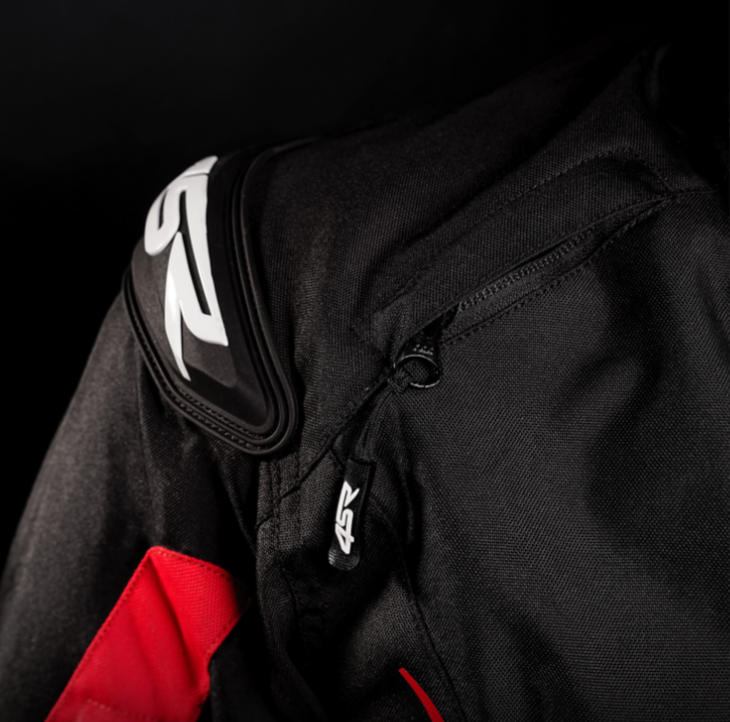 Bunda má dva vnější a tři vnitřní kapsy pro úschovu a lze ji připevnit k motocyklovým kalhotám 4SR pomocí krátkého zipu. Možnost vložení vkládacího páteřového chrániče Sas-Tec přidává další vrstvu bezpečnosti.