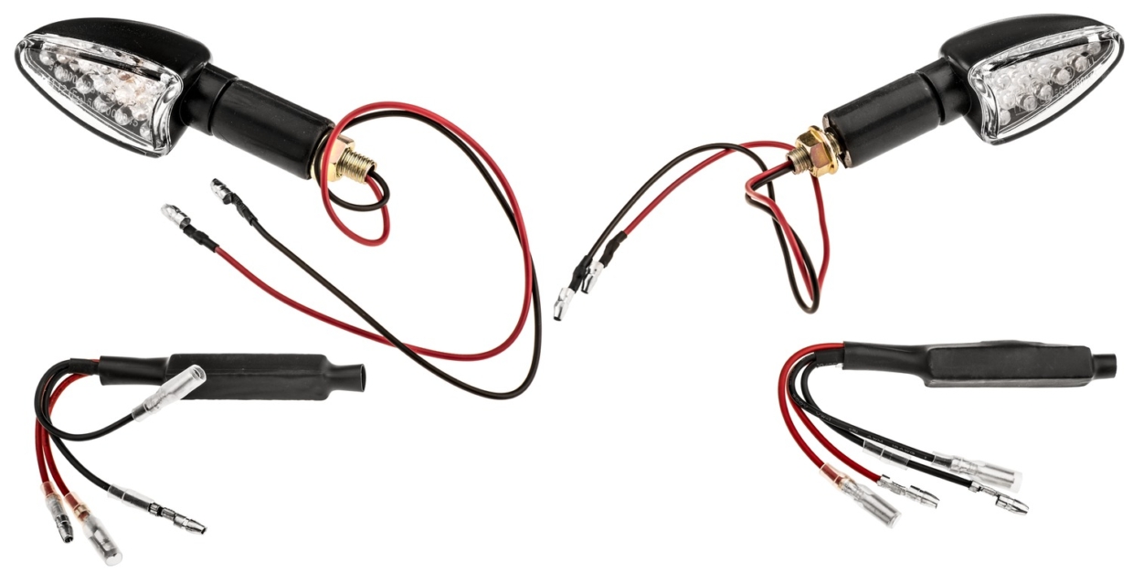Vyrobene v souladu s normami EU, jsou homologovány pro provoz v zemích Evropské unie. Měření D x Š x V: 86 x 27 x 40mm, tyto blinkry jsou kompaktní, ale dobře viditelné. Jsou snadno instalovatelné pomocí závitu se stoupáním 1,25 mm a maticí M8 a jsou odolné vůči povětrnostním vlivům, což je činí ideálními pro použití za všech podmínek.