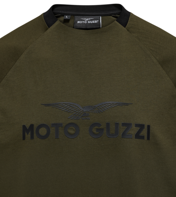 Hlavním rysem tohoto trička jsou pogumované potisky MOTO GUZZI, které se nacházejí na přední i zadní straně. Tyto výrazné potisky dodávají tričku jedinečný a osobitý styl. Kontrastní manžety z dvojité tkaniny na rukávech a límci přidávají moderní nádech a činí toto tričko dokonalým pro ležérní a moderní vzhled.