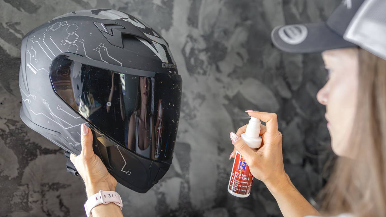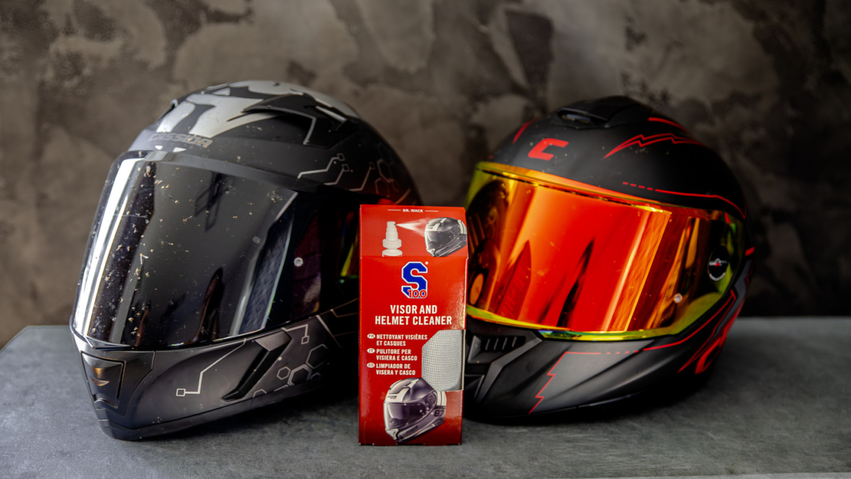 Na hledí přileb, předních světlometů a dalších čelních částech motocyklu často ulpívá hmyz, který je potřeba účinně odstranit. Produkt S100 Visor & Helmet Cleaner nabízí silný čisticí účinek bez rizika poškrábání nebo vzniku šmouh.