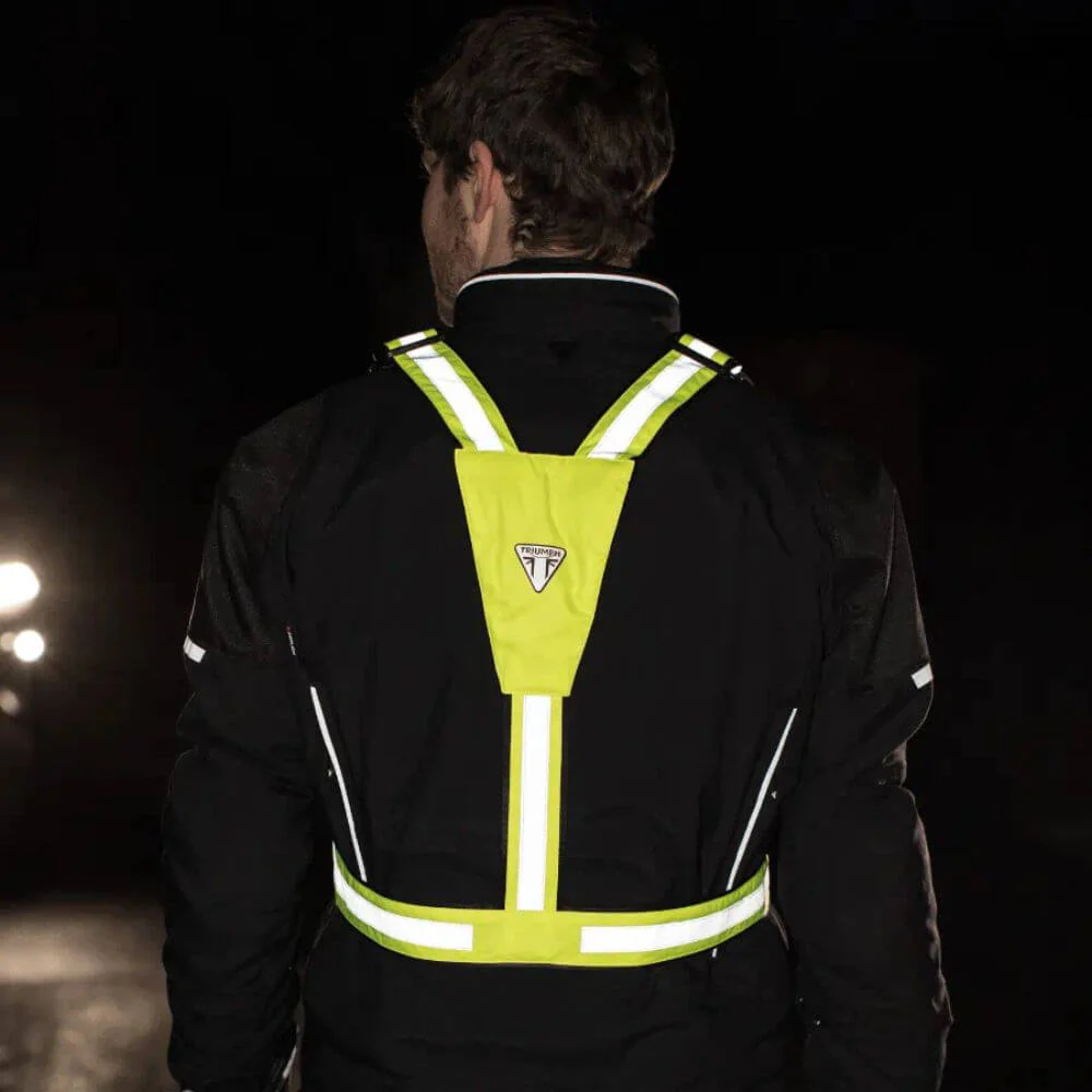 S Triumph Bright Brace budete vidět jak v noci, tak i během dne.. Jedná se o plně nastavitelný chránič s certifikací CE, který lze nosit přes jakoukoli motocyklovou bundu a je vybaven reflexními panely pro zvýšenou viditelnost. Kšandy lze snadno složit a uložit do kapsy bundy, když je nepoužíváte.