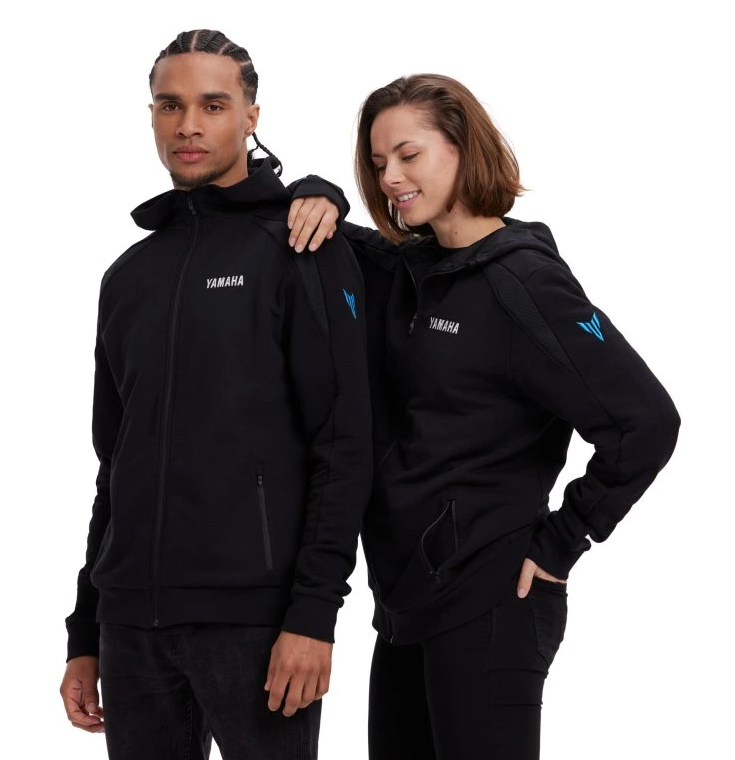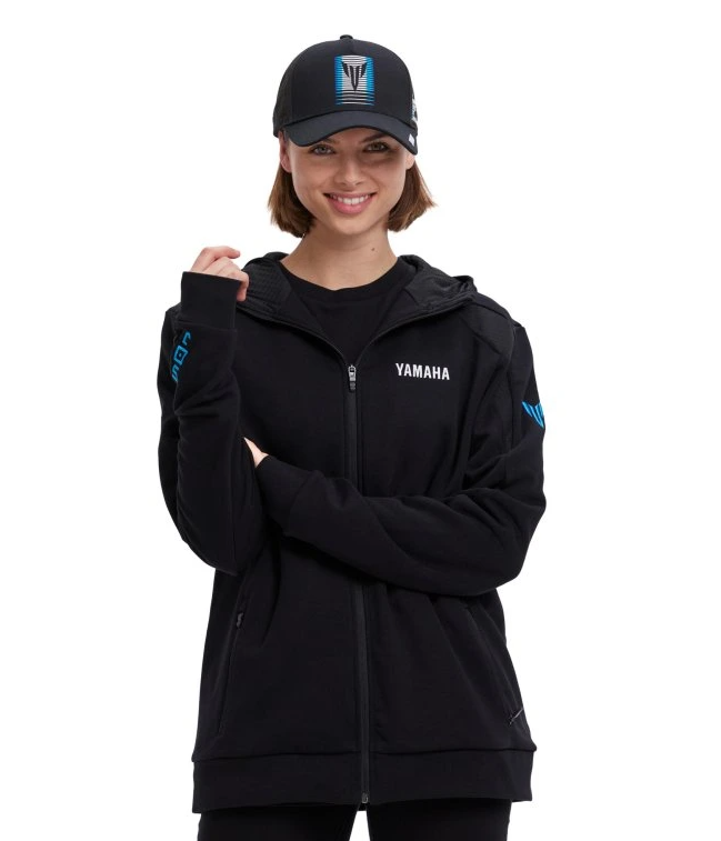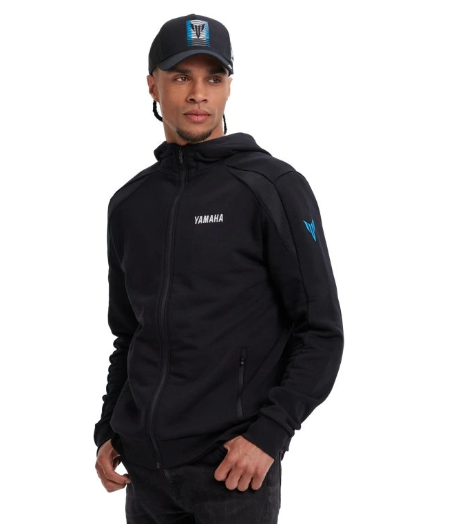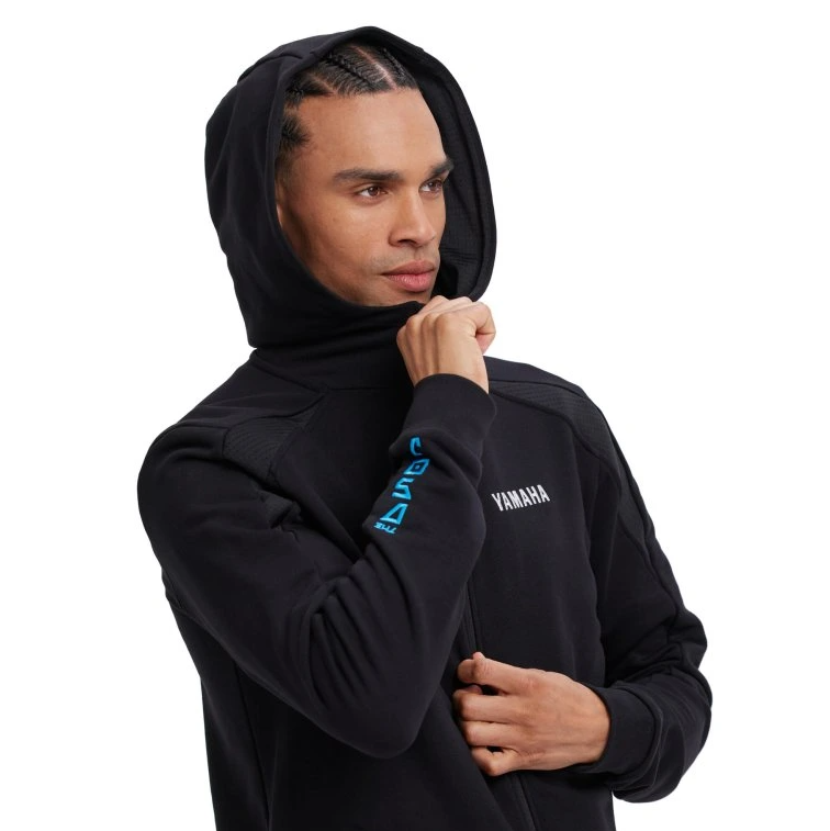Díky pevné kapuci s podšívkou a zipu po celé délce poskytuje nejen ochranu proti chladu, ale také stylový vzhled. Přední kapsy na zip umožňují bezpečně uchovat drobnosti. Atraktivní azurově modré detaily, grafický potisk na zádech a vyšívaná loga Yamaha, MT a DSOJ (Dark Side of Japan) na hrudi i rukávech dodávají mikině charakteristický design inspirovaný temnou estetikou řady MT. Síťované vložky navíc přispívají k pohodlí při nošení.