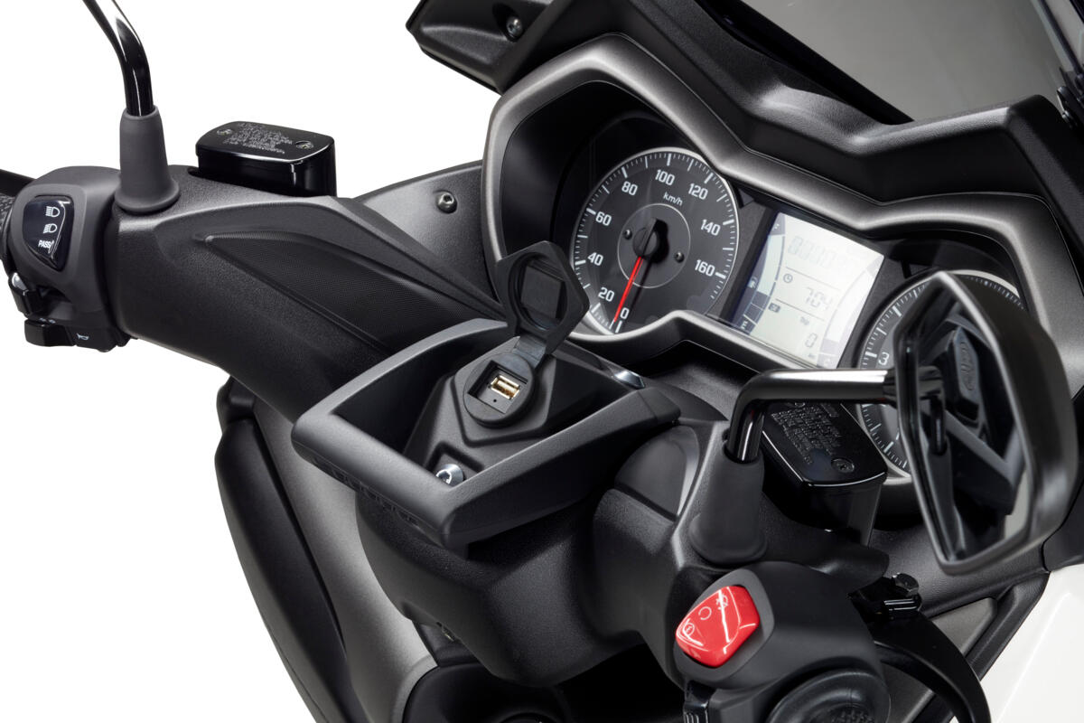 Držák je navržen pro bezpečné uchycení chytrého telefonu nebo GPS a lze jej umístit poblíž tachometru pro lepší přehled jezdce. Má také přípravu pro připojení dalšího USB konektoru.