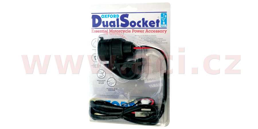 Jedná se o robustní USB zásuvku od značky Oxford, která je navržena tak, aby vydržela náročné podmínky na cestách. Tato zásuvka je vybavena dvěma USB vstupy s výstupem 5V/2A, což je dostatečné pro nabíjení tabletů, chytrých telefonů, navigací a MP3 přehrávačů. Navíc je zásuvka chráněna pryžovým víčkem, což ji činí odolnou vůči dešti a vlhkosti.