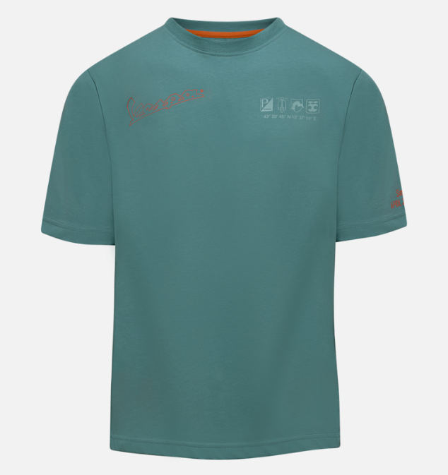 Výrazným prvkem tohoto trička je logo Vespa, které je nezaměnitelné a dodává mu jedinečný charakter. Logo je decentně umístěno na přední straně trička a je doplněno exkluzivním potiskem uvnitř. Toto tričko je také skvělým dárkem pro všechny milovníky Vespy, ať už jste sami jezdci nebo jen obdivovatelé této ikonické značky.