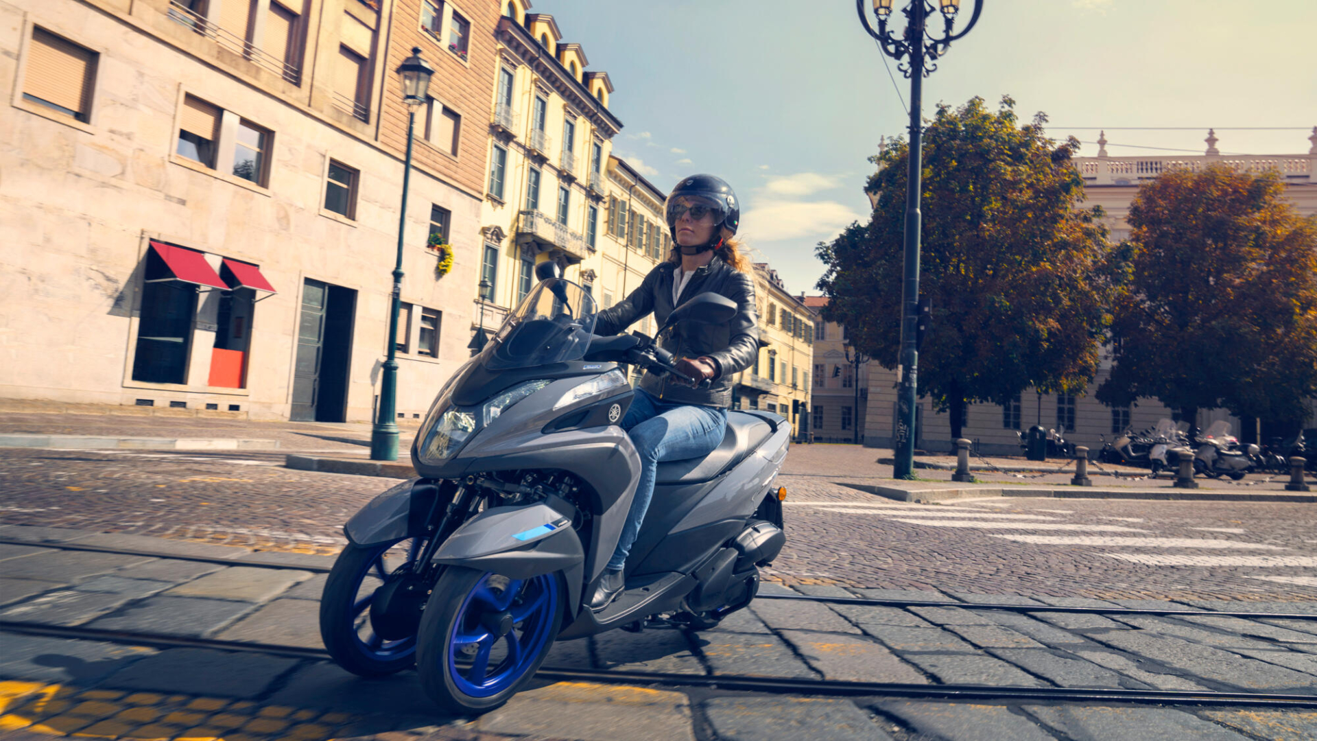 Bavte se překonáváním překážek, které vám město připraví, na modelu Yamaha Tricity 125. Díky pohodlné jízdní pozici a vyšší jistotě při jízdě po tramvajových kolejích nebo dlažebních kostkách se na třech kolech budete ihned cítit jako doma.